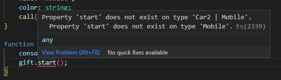 교차 타입으로 타입을 지정한 toyCar에는 Toy와 Car3의 속성들을 모두 넣어주어야 에러가 발생하지 않는다.
