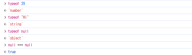 | Null 타입 | "object" | N/A |