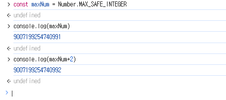 이 예시를 보면 최대 범위를 벗어나는 값은 정확성을 잃고 배정밀도 부동 소수점 근사값으로 표시된다. `Number.isSafeInterger()`을 사용하여 숫자가 안전한 정수 범위내에 있는지 확인할 수 있다. 만약 Number가 표현할 수 있는 범위보다 큰 숫자를 저장하고 싶다면 BigInt를 사용하면 된다.